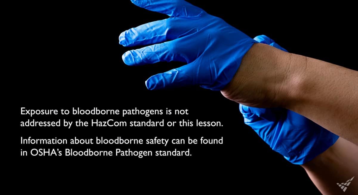 Some chemicals pose health hazards that cause both immediate, acute, and long-lasting chronic health effects. Acid spilled onto the skin causes an immediate burn, while inhaling asbestos particles in the air usually takes years before the effects result in a serious health condition like mesothelioma, lung cancer. Other examples of health problems caused by chemical exposure include heart ailments, kidney and lung damage, sterility cancer, burns, and rashes. It should be noted that exposure to bloodborne pathogens is not addressed by HazCom standard or this lesson. Information about bloodborne safety can be found in OSHA’s bloodborne pathogen standard.
