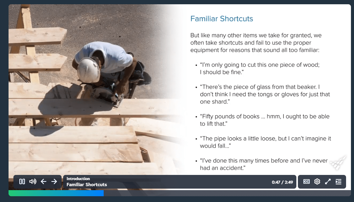 This course covers the basics of hazard assessments to determine required personal protective equipment (PPE), as well as various types of PPE. Specifically, the course content addresses eye and face protection, hand and arm protection, foot and shin protection, safety footwear, and general work clothing. Lastly, the course re-emphasizes the training requirements for personal protective equipment for teachers and staff in K-12 education.